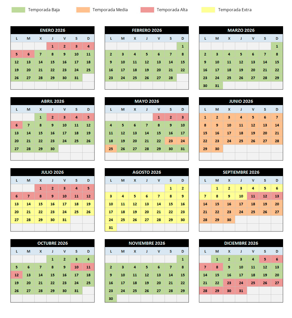 | T. ALTA | 160 | 195 | 195 | 195 | 140 |